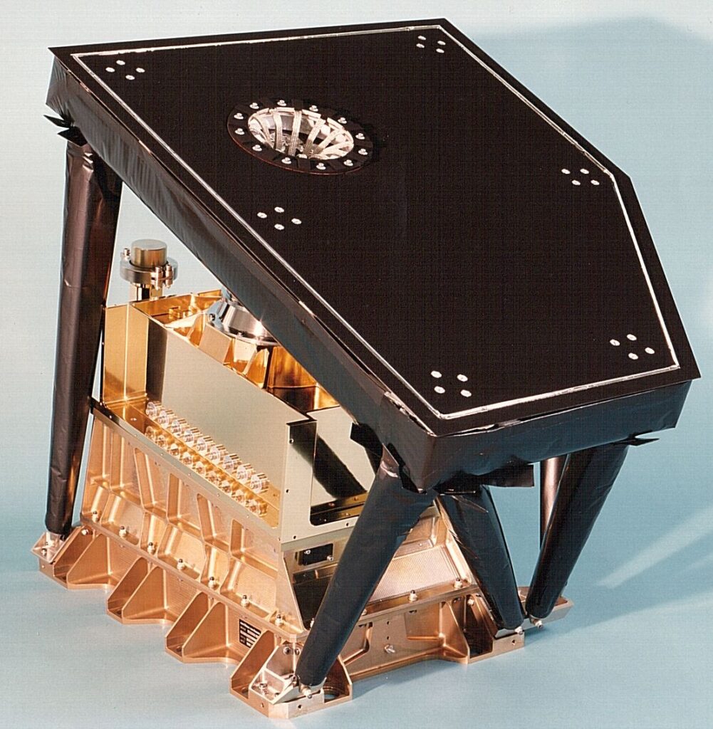 - XMM-Newton, extensive tests have been performed on the bread board model (BBM) ofthe detector housing of the Reflection Grating Spectrometer (RGS); see icon. Only with anewly conceived compound radiator and using TiAlVa for the central supporting labyrinth(including hidden heat-switches), it was possible to prove the experts wrong and accomodate the evolving temperature demands of the CCD-detectors (- 50 to -60 °C initially —> – 150 to +150 °C in the end) with passive radiator-cooling, while staying inside the all the time unchanged allocated mass and volume envelopes